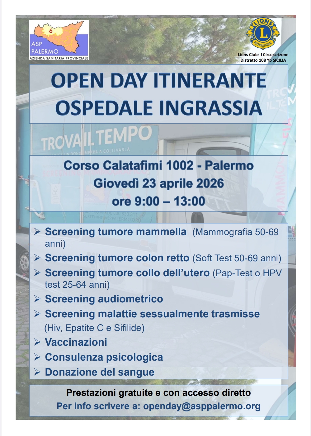 PALERMO 21 APRILE 2026 – Prende il via domani, martedì 22 aprile, all’Ospedale Ingrassia di Palermo l’(H) Open Week sulla salute della donna promossa da Fondazione Onda ETS, iniziativa nazionale dedicata alla prevenzione e alla medicina di genere. Fino al 29 aprile il nosocomio di Corso Calatafimi offrirà un articolato programma di servizi gratuiti clinico-diagnostici e informativi rivolti alla popolazione femminile, con l’obiettivo di favorire l’accesso ai percorsi di diagnosi precoce e diffondere maggiore consapevolezza sui temi della salute.
