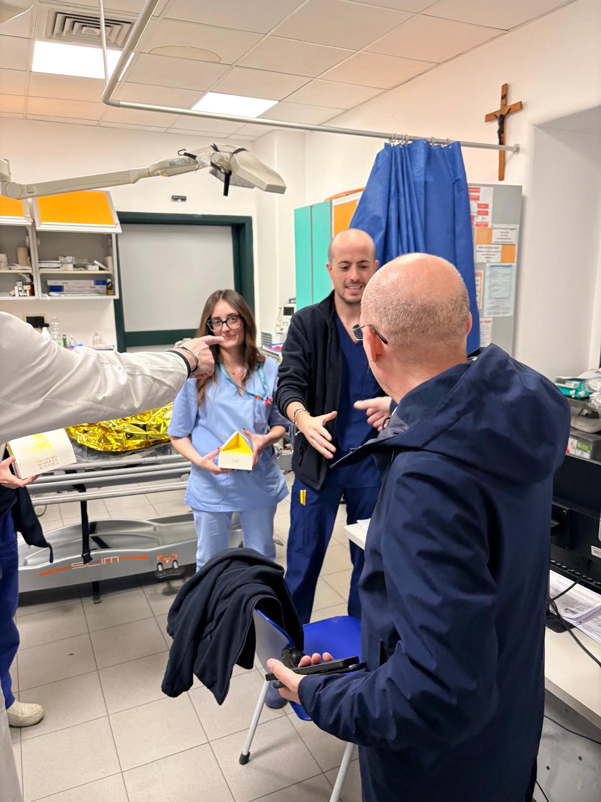 Nel corso della visita, il Direttore generale ha voluto condividere un momento simbolico di festa donando la tradizionale colomba pasquale, esprimendo gratitudine e apprezzamento per il lavoro svolto quotidianamente dal personale sanitario, anche durante le festività.