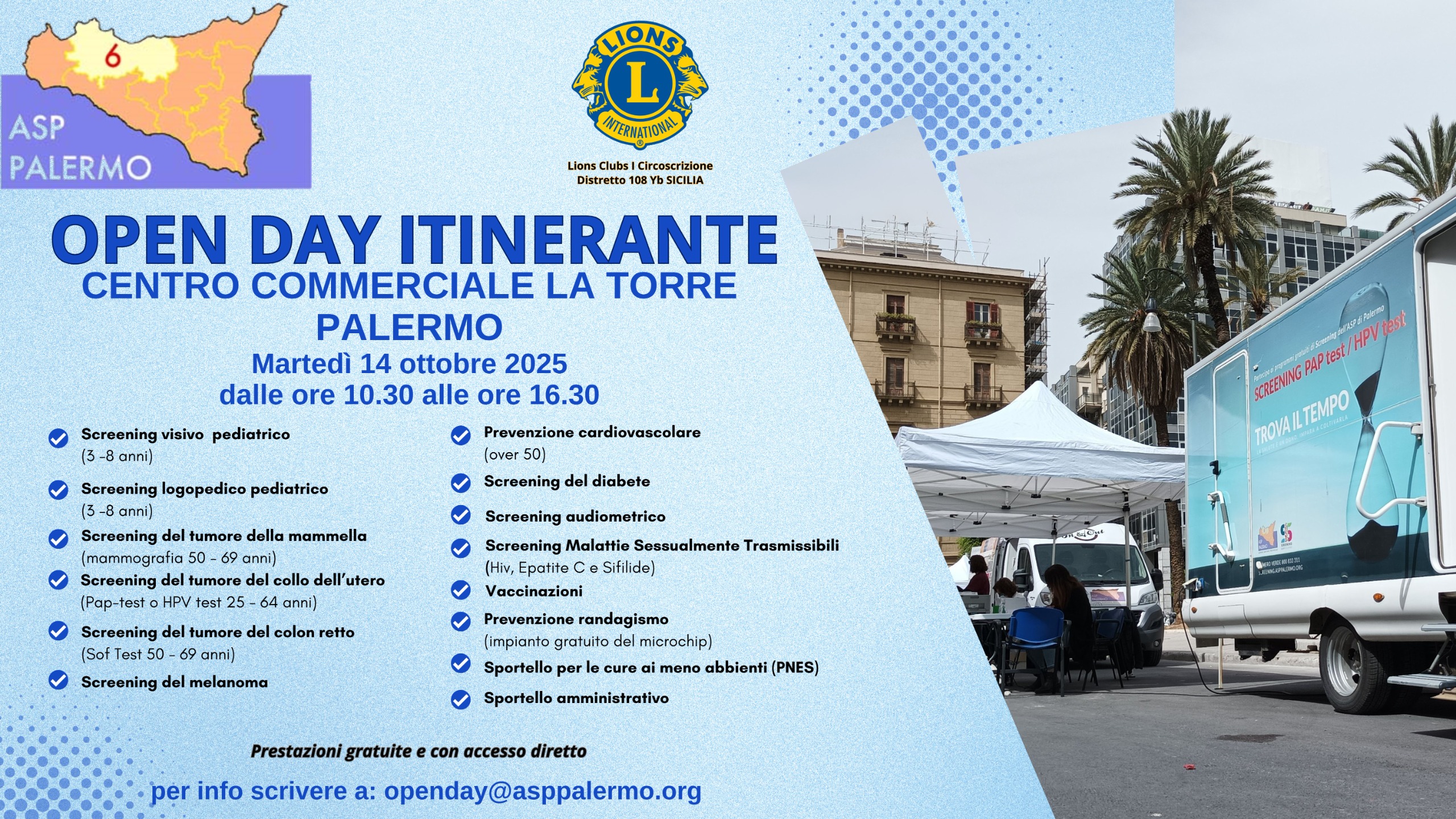 L’Open day della prevenzione farà tappa martedì 14 ottobre al Centro Commerciale La Torre di Palermo